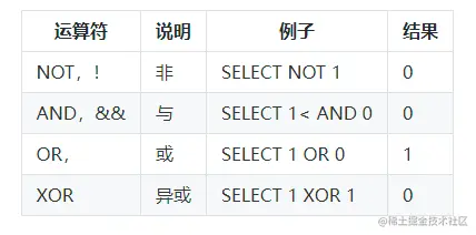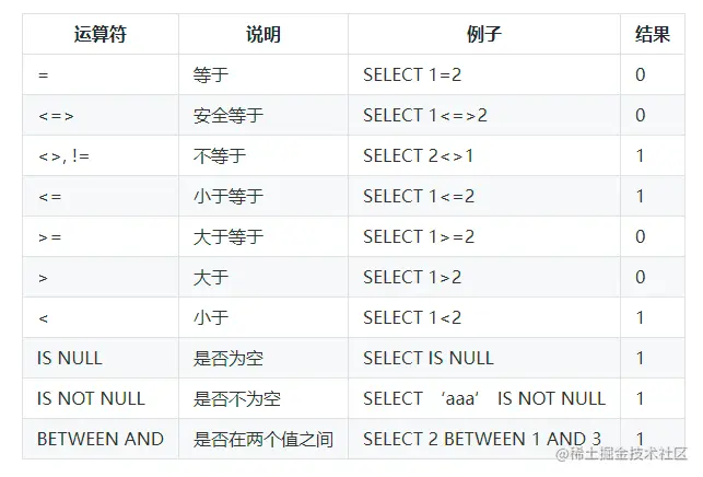 Mysql的运算符