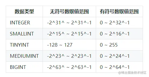 根据占用字节数可以求出每一种数据类型的取值范围,例如: