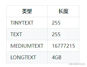 文本类型可以保存非二进制字符串。当保存或查询文本类型的值时,不删除尾部空格。