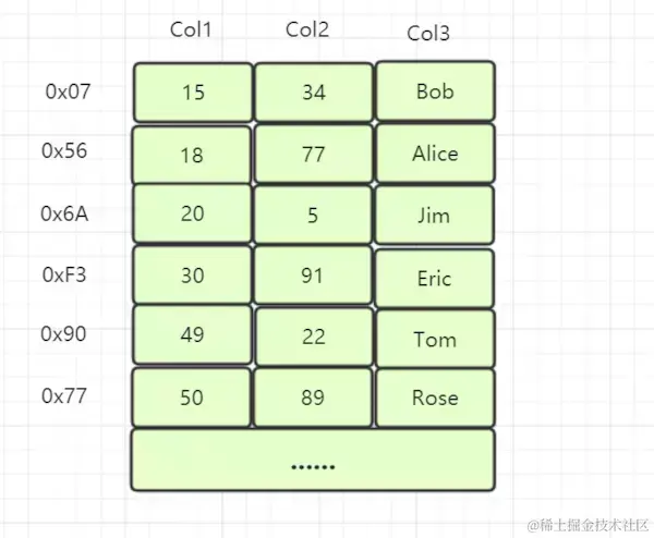 假设索引列为Col3,索引结构图如下: