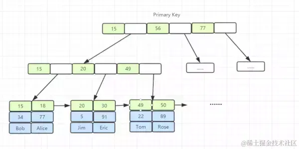 B+树聚集索引结构图