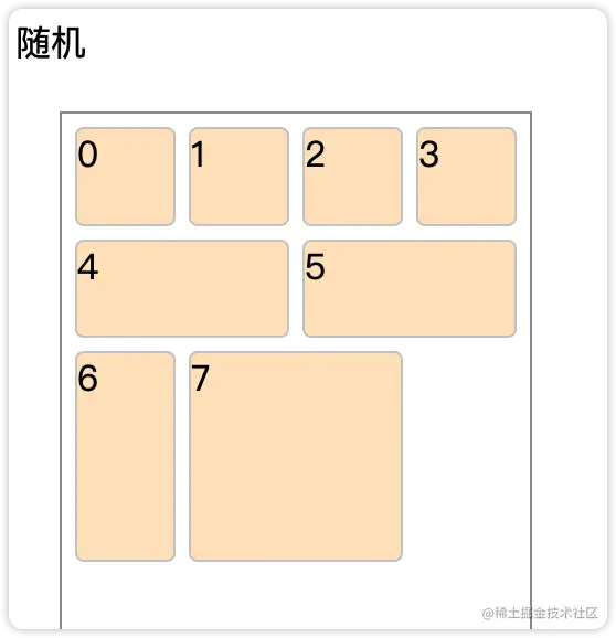 当我们每次重新调用randomItem方法之后,都会对子节点做一个随机的摆放。效果如图: