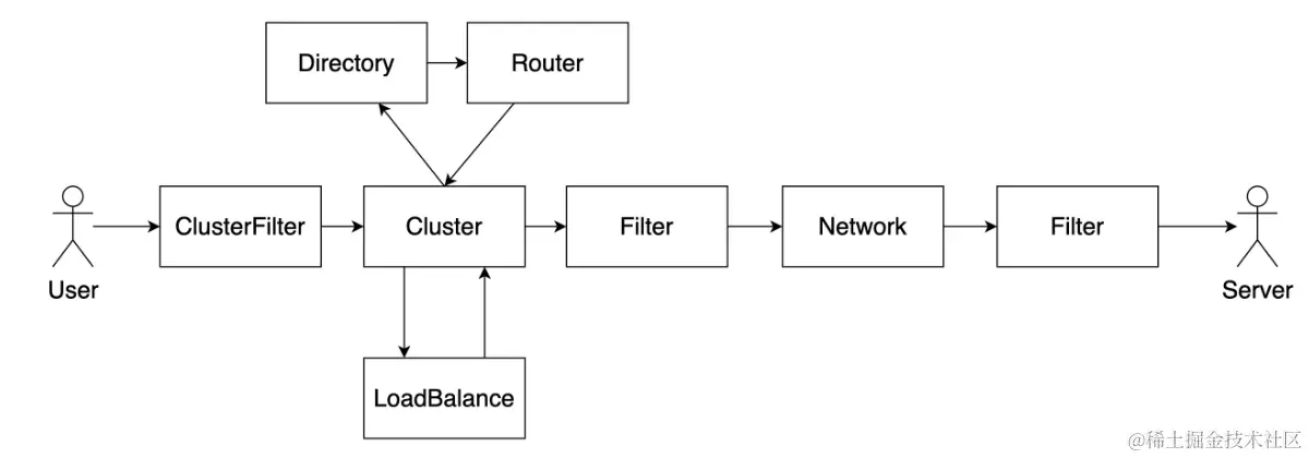 上图是Dubbo官网基于Dubbo 3的服务调用链路,从服务消费端发起请求,到服务提供端接收请求,Dubbo 在整个设计中提供了很多扩展点,其中最常用的包括ClusterFilter、Router、LoadBalance、Filter等。
