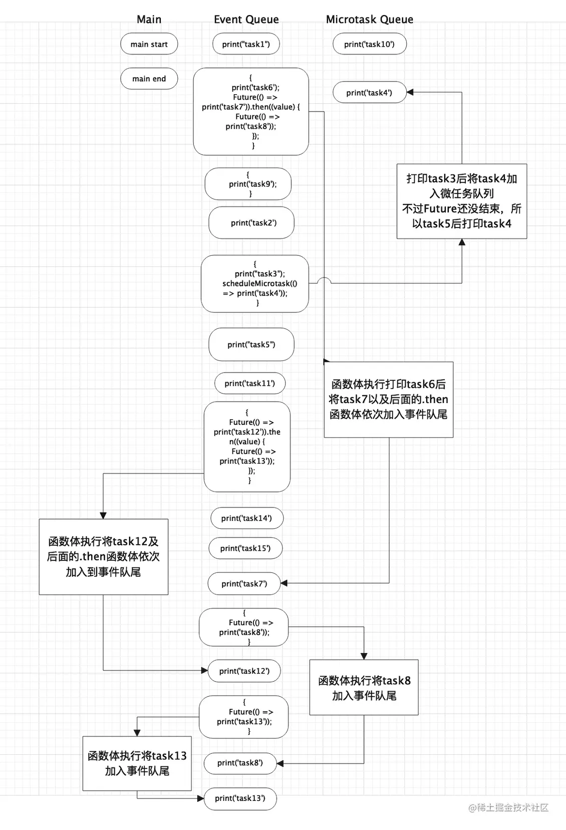 Dart从两个队列执行任务:event事件队列和microtask微任务队列; -
