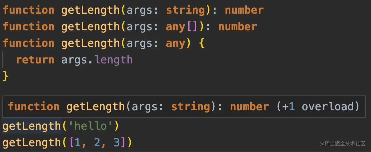- 函数重载则是我们可以去编写不同的重载签名(overload signatures) 表示函数可以不同的方式调用,一般写两个及以上的重载签名,再编写一个通用函数的实现