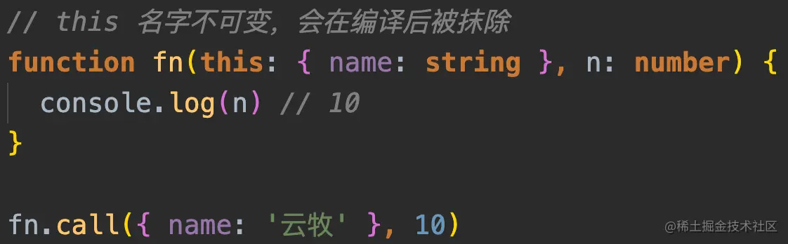 - 我们可以在函数第一个参数声明 this 的类型,函数调用传入的参数从第二个开始接收