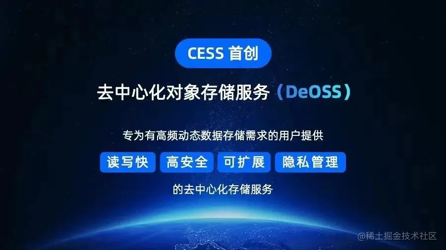 CESS 专注于去中心化云存储,是首个为 Web3 高频动态数据的存储提供去中心化全栈解决方案的存储网络。CESS 的目标是构建第一个可以支持大规模商业应用落地的去中心化云存储网络,为企业和个人提供速度最快、成本最低、安全可靠、可编程的、私密的去中心化云存储服务。