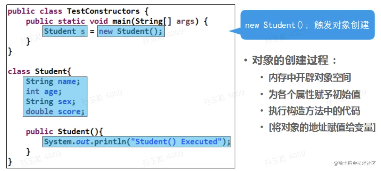 - 我们在创建对象实例时,会通过new操作符调用对应的构造方法;