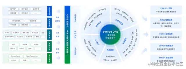 博睿数据核心产品Bonree ONE,凭借博睿数据领先的大数据采集和智能分析能力,稳定强大的中台能力,具备全球竞争力的产品特性,真正实现IT系统全栈、全链路、全场景的智能可观测。凭借出色的AI能力,博睿数据根因分析获信通院AIOps能力成熟度模型优秀级,也是国内首家厂商获此评级。Bonree ONE 2.0也以卓越的产品力以及优秀的用户体验,获得信通院“2022IT新治理年度明星产品”的荣誉。