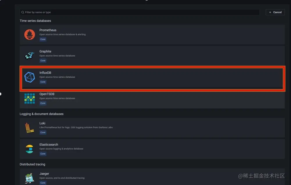 Grafana安装过程略,启动Grafana后,通过浏览器访问http://192.70.3.43:3000 ,添加数据源选择InfluxDB(openGemini兼容InfluxDB)。