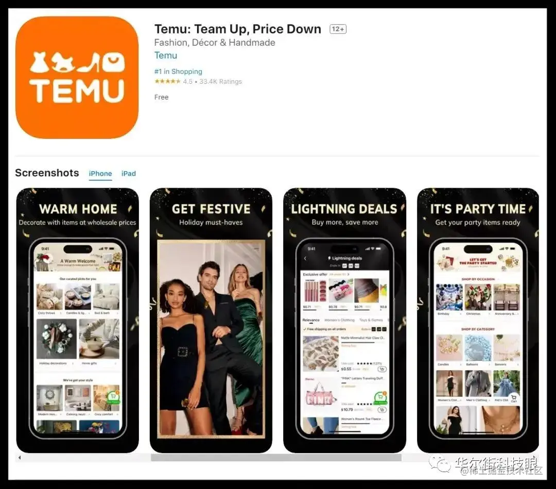 今年2月,拼多多旗下跨境电商平台Temu在有“美国春晚”之称的超级碗上投放了多次广告,每秒花费23万美元。Temu花费了巨额广告费的同时获得了巨大的流量收益。有北美留学生向《华尔街科技眼》介绍,“下载Temu应用,像个亿万富翁一样购物”已经成了美国teenager之间的一个梗,打开了他们通往新世界的大门。