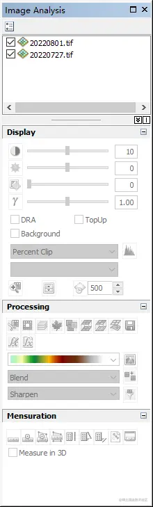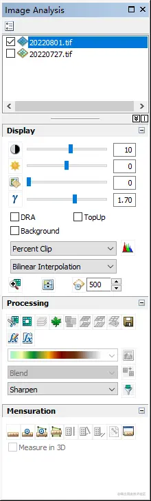 这里需要注意,只有当我们选中某一个或某几个栅格数据时,其下方的菜单栏才会由灰色的状态改变为可以进行处理的状态。