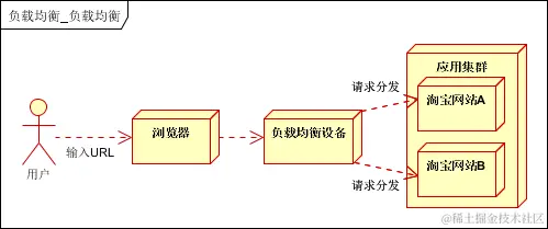 负载均衡设备:将用户访问的请求,根据负载均衡算法,分发到集群中的一台处理服务器(一种把网络请求分散到一个服务器集群中的可用服务器上去的设备)。