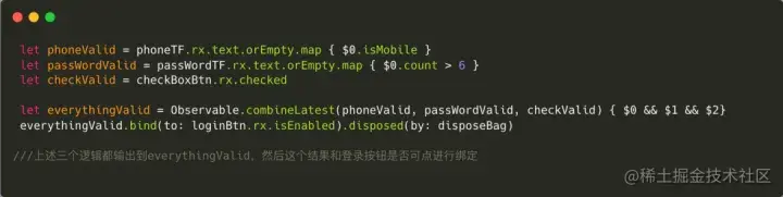 实际处理中会把这些逻辑放到 ViewModel,这样就把 RxSwift,函数式,MVVM 结合起来,达到了响应式编程的样子。