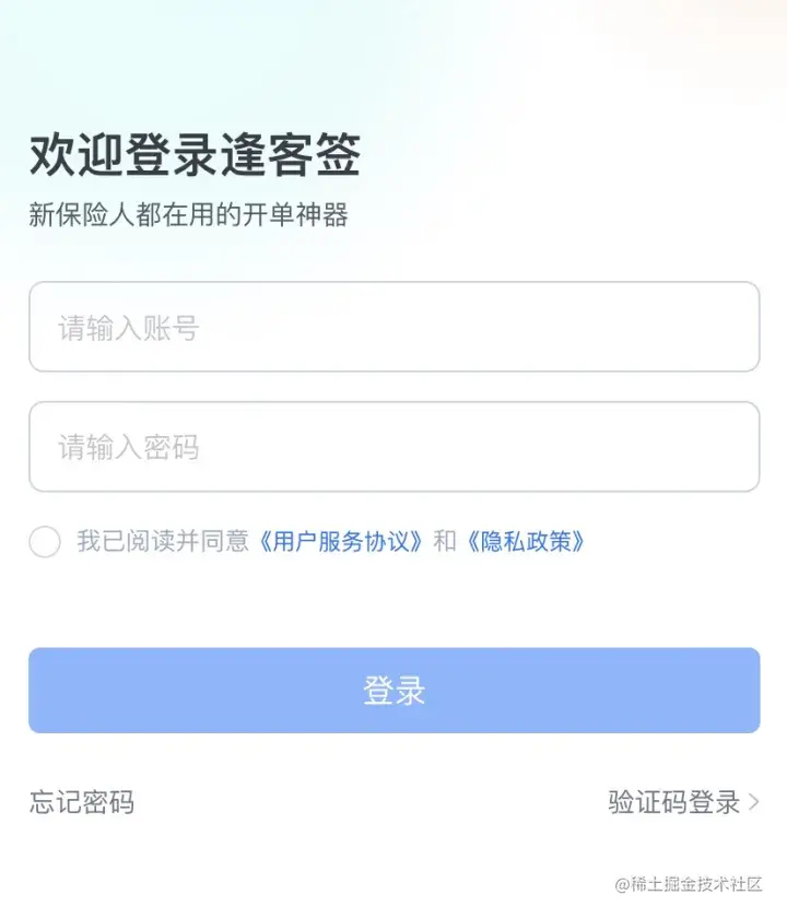 ● 当满足上面条件,点击统一条款,下面登录按钮为可点击状态否则不可点击