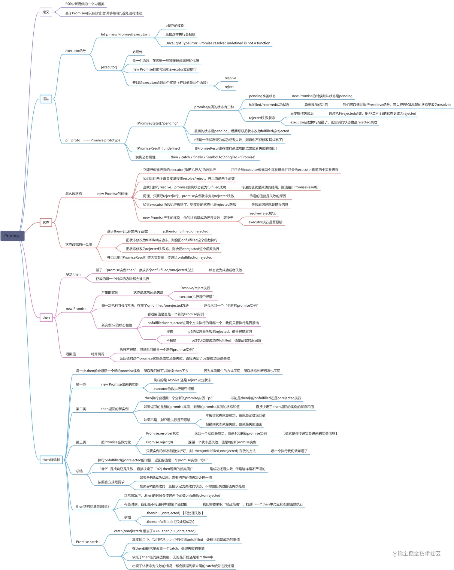 Promise中的then链机制:因为每一次.then都会返回一个新的promise实例,所以我们就可以持续.then下去了