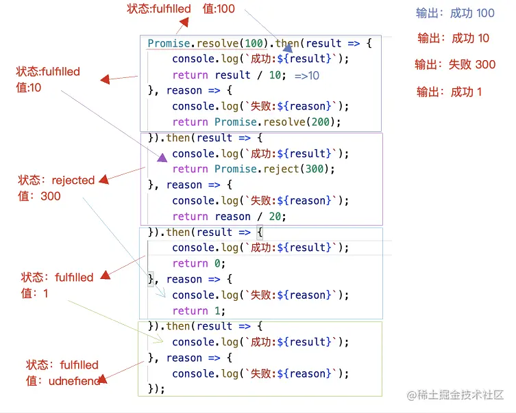 // 值:新的实例 -> 状态:rejected 值:100 */