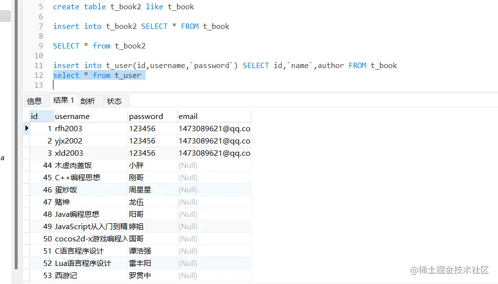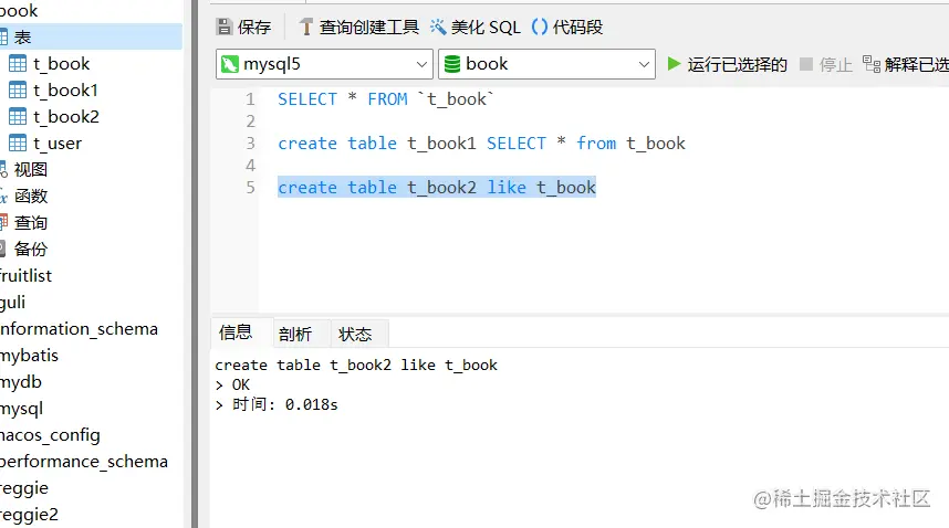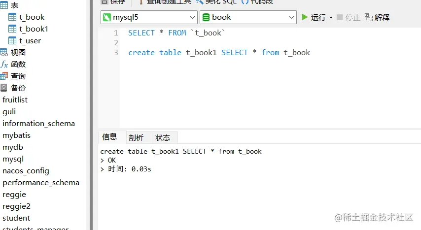 mysql 想必大家比较熟悉了, 我们常见的crud sql 想必大家也是手到拈来。 但是我在今儿上数据库课的时候,我好像连mysql中复制表的基础写法 都不会。 可能工作中不常用,但作为基础 还是想写出来分享给大家。