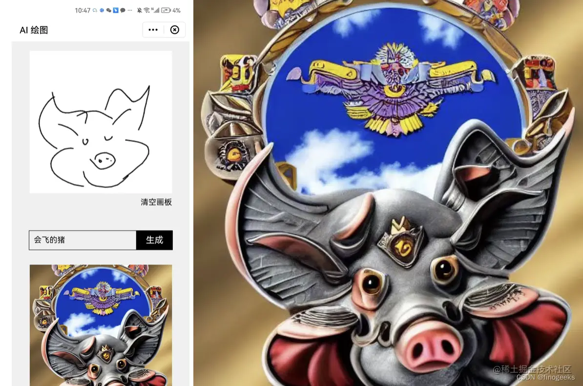 **体验:**下载一个FinClip APP 点击首页AI画板即可使用,无需注册,也无需复杂的操作,让你想到就能画到。