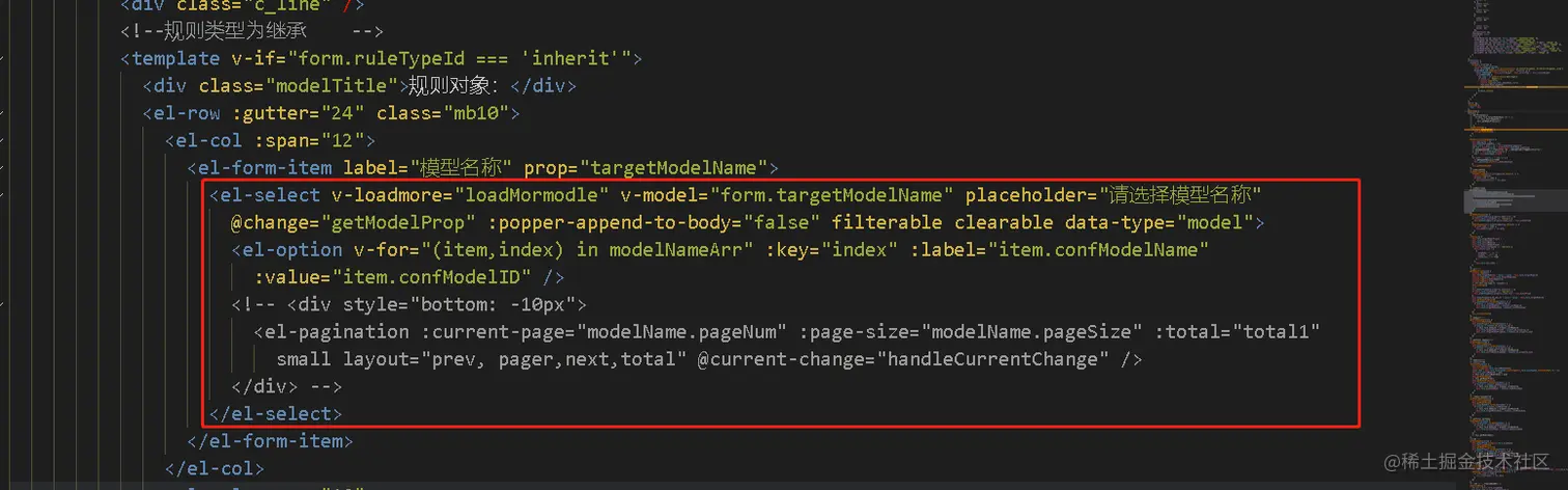 绑定 v-loadmore="loadMormodle" :popper-append-to-body="false" data-type="model"(自定义指令)