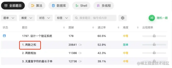 力扣、牛客等刷题网站排行最高的就是两数之和了,经典就有其经典的道理,《两数之和》因为本身并没有太高的难度。