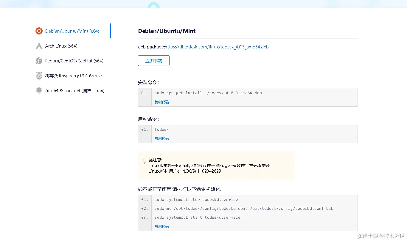 wget https://dl.todesk.com/linux/todesk_4.0.3_amd64.deb