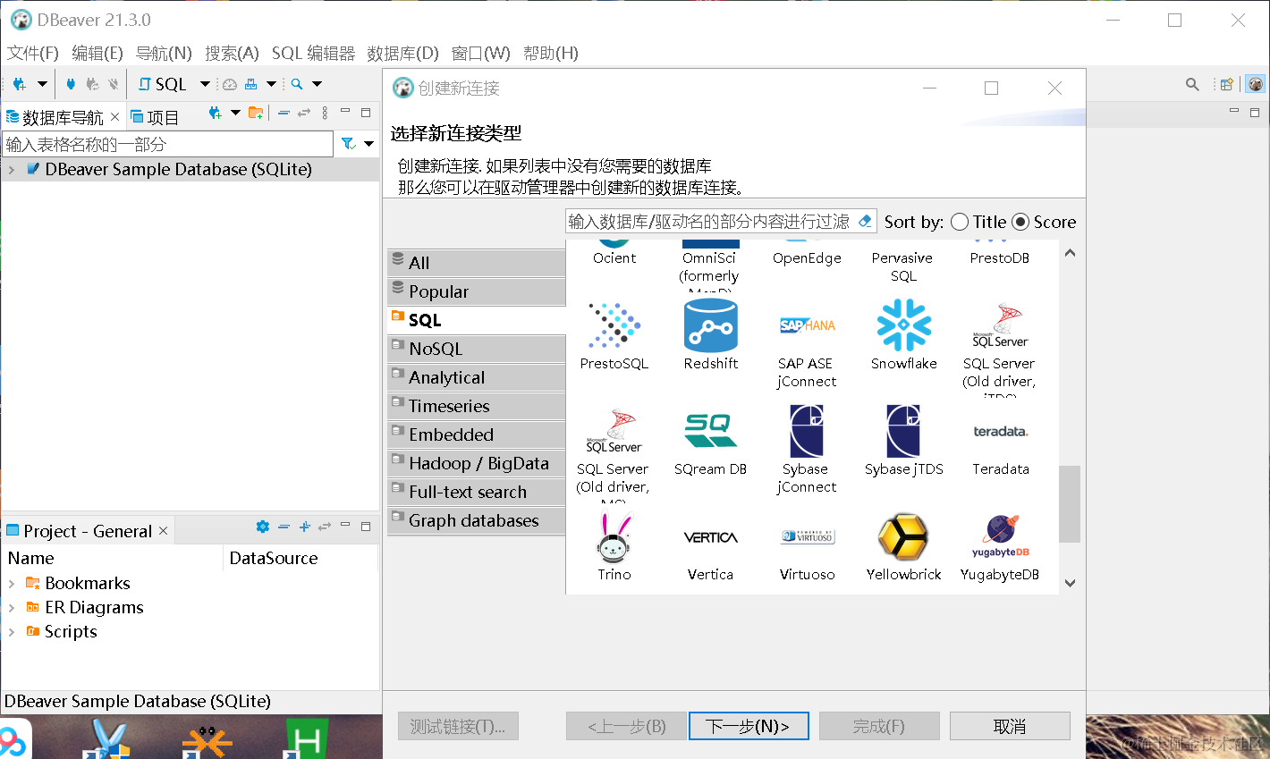 DBeaver 是一个通用的数据库管理工具和 SQL 客户端,支持 MySQL, PostgreSQL, Oracle, DB2, MSSQL, Sybase, Mimer, HSQLDB, Derby, 以及其他兼容 JDBC 的数据库。DBeaver 提供一个图形界面用来查看数据库结构、执行SQL查询和脚本,浏览和导出数据,处理BLOB/CLOB 数据,修改数据库结构等等。