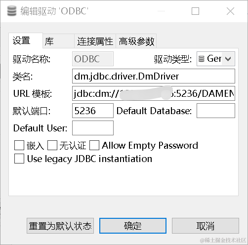 URL :jdbc:dm://IP:5236/DAMENG