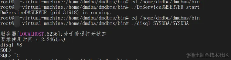 ./disql SYSDBA/SYSDBA 或 ./disql SYSDBA/SYSDBA123