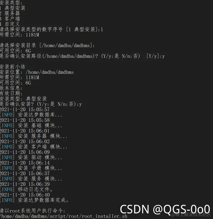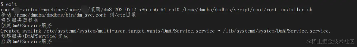 #请以root系统用户执行命令:/home/dmdba/dmdbms/script/root/root_installer.sh