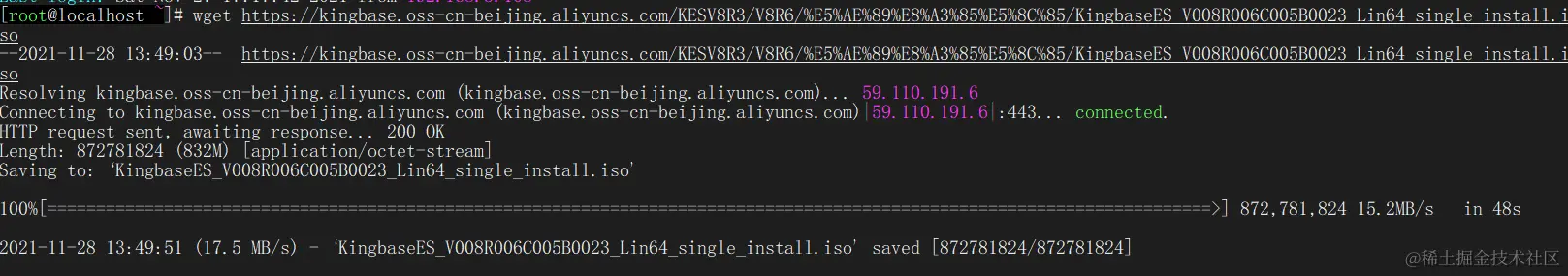 wget https://kingbase.oss-cn-beijing.aliyuncs.com/KESV8R3/V8R6/%E5%AE%89%E8%A3%85%E5%8C%85/KingbaseES_V008R006C005B0023_Lin64_single_install.iso