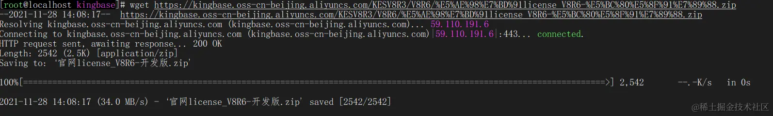 wget https://kingbase.oss-cn-beijing.aliyuncs.com/KESV8R3/V8R6/%E5%AE%98%E7%BD%91license_V8R6-%E5%BC%80%E5%8F%91%E7%89%88.zip