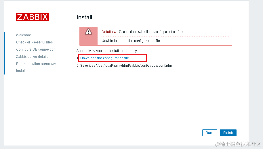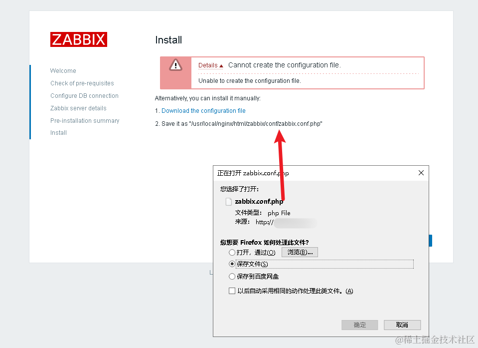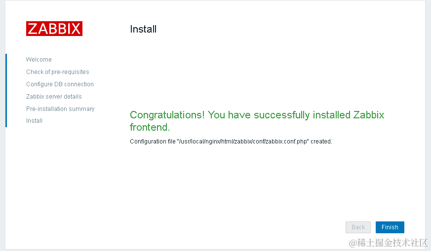 chmod -R 755 /var/www/html/zabbix/conf/zabbix.conf.php