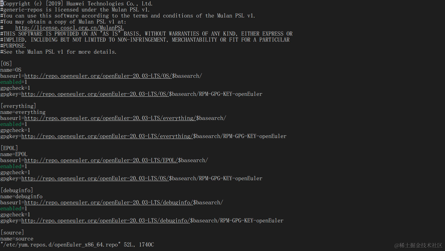 gpgkey=http://repo.openeuler.org/openEuler-20.03-LTS/OS/$basearch/RPM-GPG-KEY-openEuler