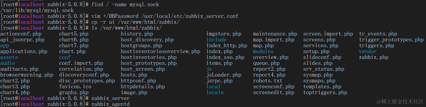 #Zabbix 前端是 PHP 编写的,所以必须运行在支持 PHP 的 Web 服务器上。需要从ui路径下复制 PHP 文件到 Web 服务器的 HTML 文档目录,完成安装,把整个ui目录都拷贝过去并命名为zabbix
