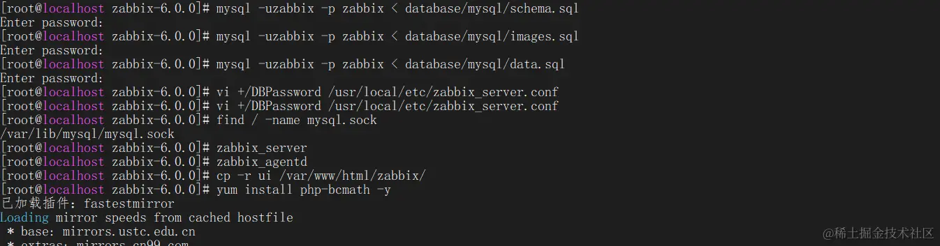 mysql -uzabbix -p zabbix < database/mysql/schema.sql