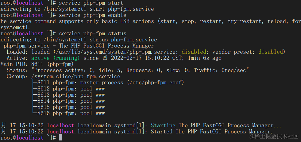 service php-fpm start