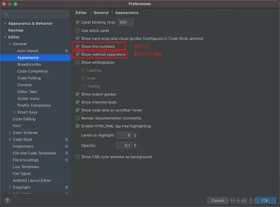 显示行号和方法分割线