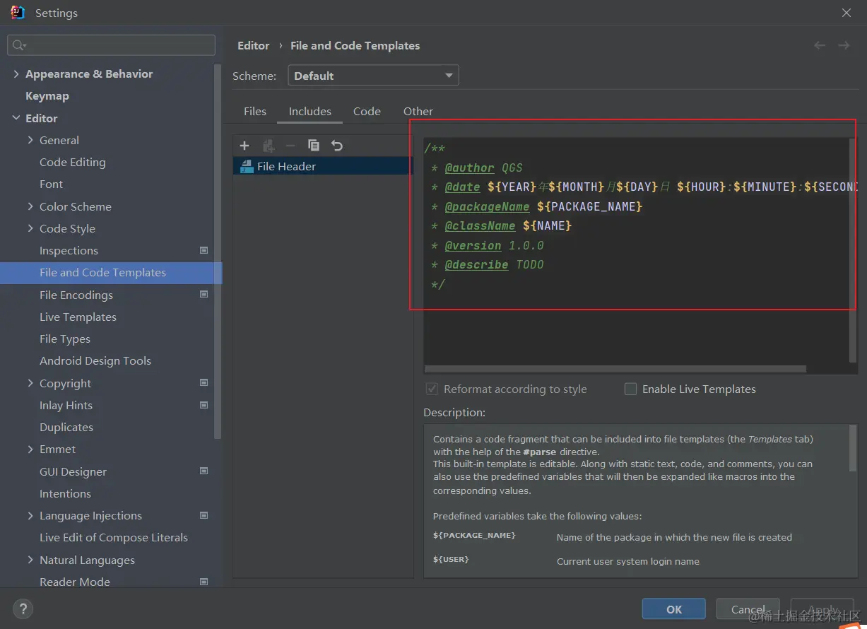 创建文件时,自动生成作者和时间信息