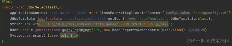 User user = jabcTemplate.queryForObject(sql, new BeanPropertyRowMapper<>(User.class),25);