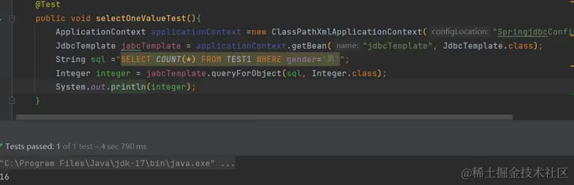 JdbcTemplate查一个值