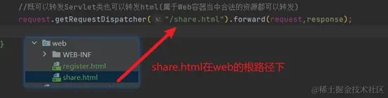 request.getRequestDispatcher("/share.html").forward(request,response);