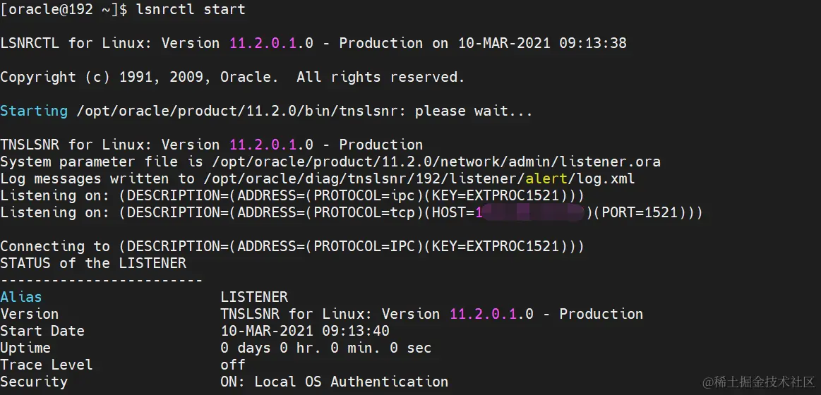 lsnrctl start