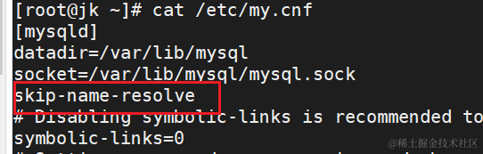 vim /etc/my.cnf 中的[mysqld]下添加skip-name-resolve