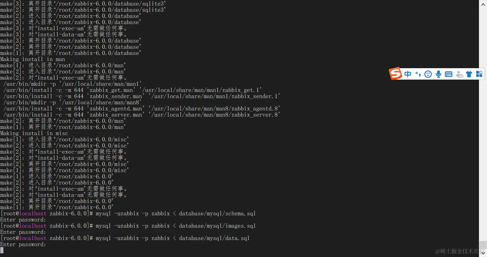mysql -uzabbix -p zabbix < database/mysql/schema.sql