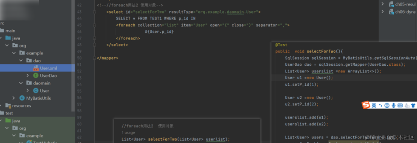 <select id="selectForTwo" resultType="org.example.daomain.User">