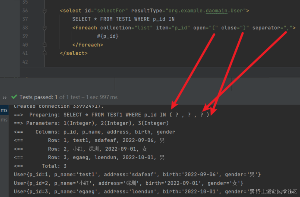 <select id="selectFor" resultType="org.example.daomain.User">
