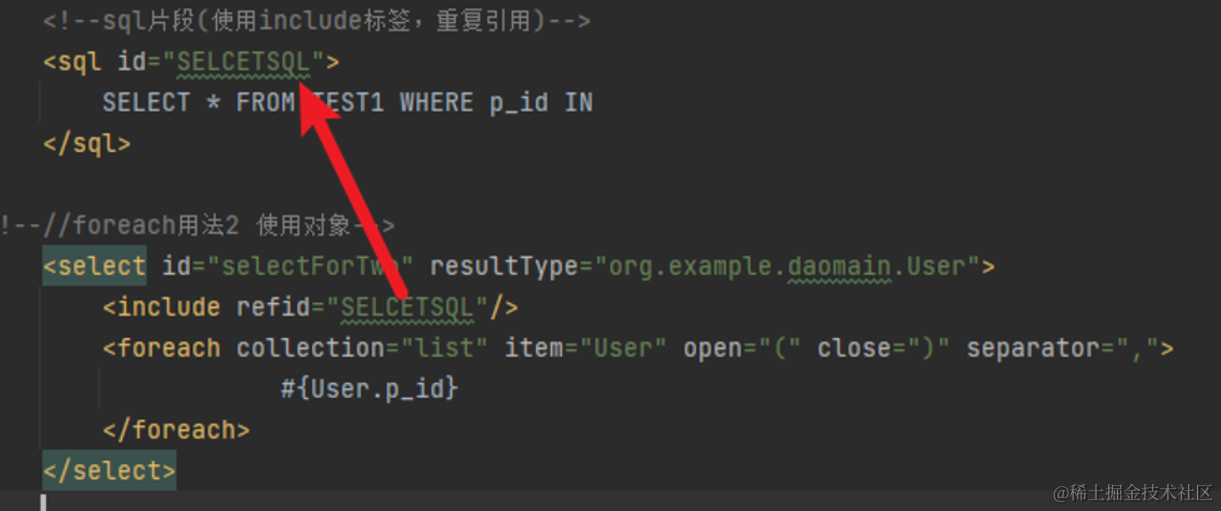<sql id="SELCETSQL">