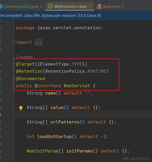 @WebServlet(name ="demo" ,urlPatterns = {"/qgs/demoServlet1","/qgs/demoServlet2"}, loadOnStartup = 1,