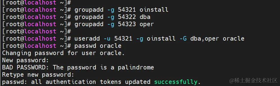 useradd -u 54321 -g oinstall -G dba,oper oracle